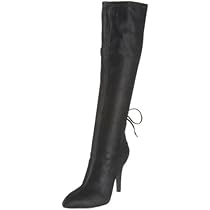 - Stretch upper in a knee high zip-up boot style with a pointed toe