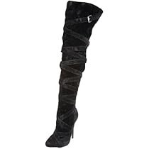 - Stretch upper in a knee high zip-up boot style with a pointed toe