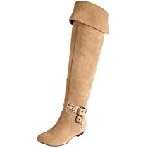 Over the knee or below the knee these tough BCBGeneration Cristina boots will rock your world. Suede upper in a dress over-the-knee boot style with a partial zipper for easy on and off. A 20 inch shaft may be folded down to create a cuffed knee-high look. Dual ankle straps with studded accents and metallic buckle details. 15 inch circumference soft lining and lightly padded insole. Traction pattern outsole. 1/2 inch heel.[]