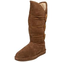 Keep warm and look hot in this versatile suede boot featuring a cozy shearling lining a split shaft design with triple toggle closure signature button décor and classic flat heel. By Bearpaw